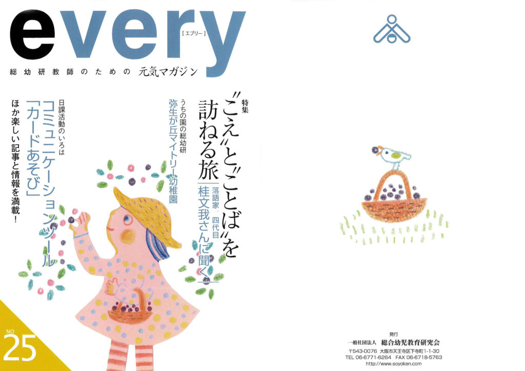 エブリ―は、総幼研職員のための元気マガジンです。今回の25号のコンテンツ一部抜粋は以下の通りです。◆こえとことばを訪ねる旅/落語家 四代目桂文我さんに聞く◆うちの園の総幼研/訪問ルポ/佐賀県 弥生が丘マイトリー幼稚園◆Topics ことばの旅 総幼... -