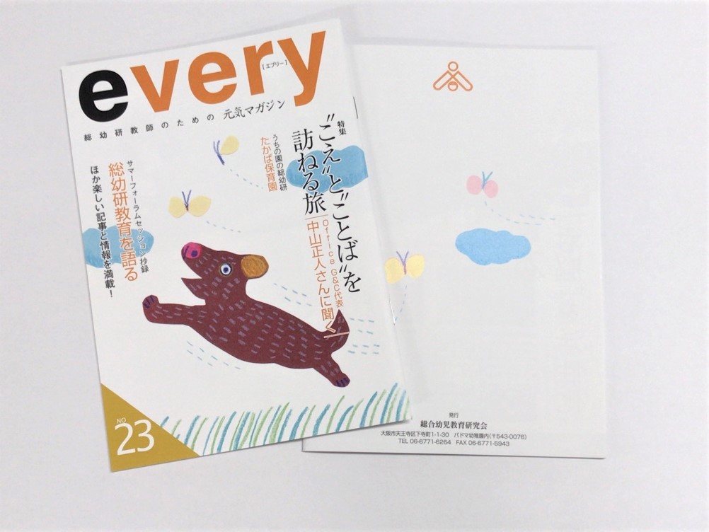 エブリ―は、総幼研職員のための元気マガジンです。今回の23号のコンテンツ一部抜粋は以下の通りです。◆総幼研会長からのご挨拶◆総幼研のあゆみ~年表で振り返る32年◆こえとことばを訪ねる旅/Office G&C代表 中山正人さんに聞く◆うちの園の総幼研/訪問ル... -