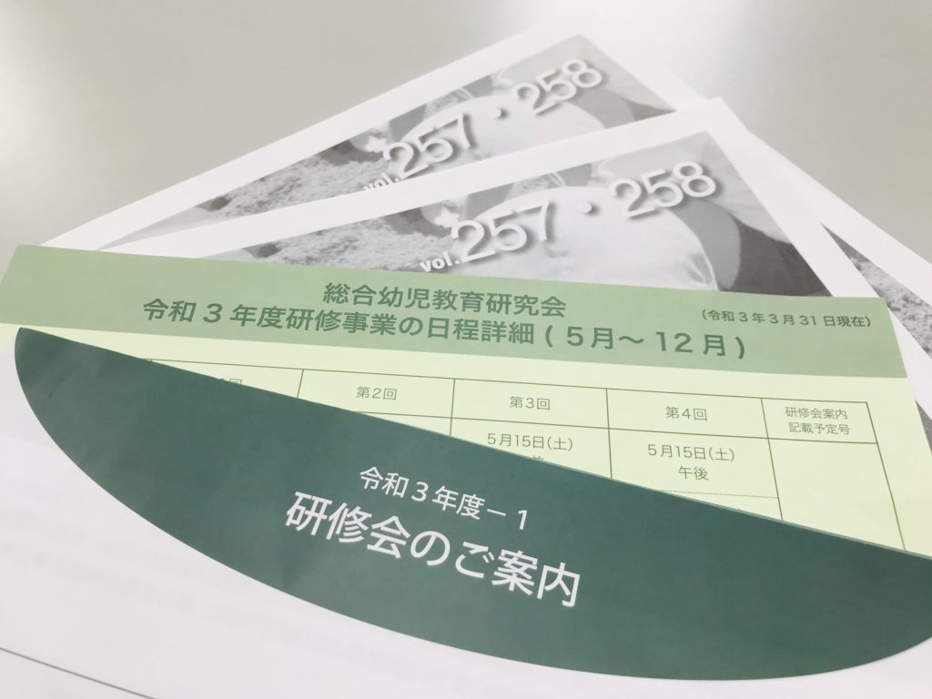 会員園へ順次、以下のものを発送してまいります。◆令和3年度-1 研修会のご案内(*クリックすると、研修会案内ページに移動します)◆令和3年度研修事業の日程詳細(5月~12月)◆総幼研レポート257号・258号(特別合併号)よろしくお願いいたします。&n... -
